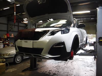 こちらのプジョー3008GT ブルーHDi パールホワイトは車検整備での入庫ですね。
