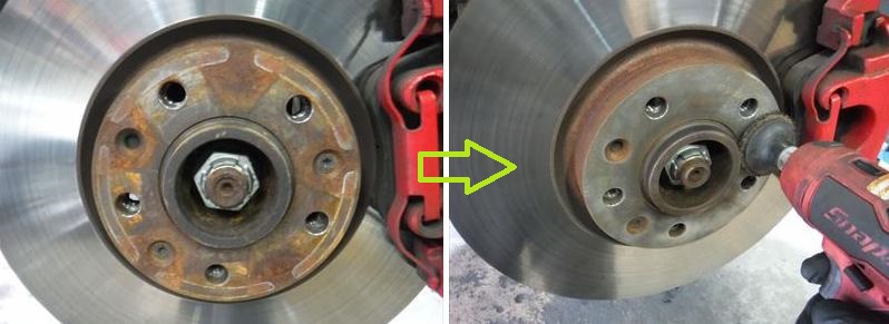ホイールハブは小型バフで磨いて清掃。