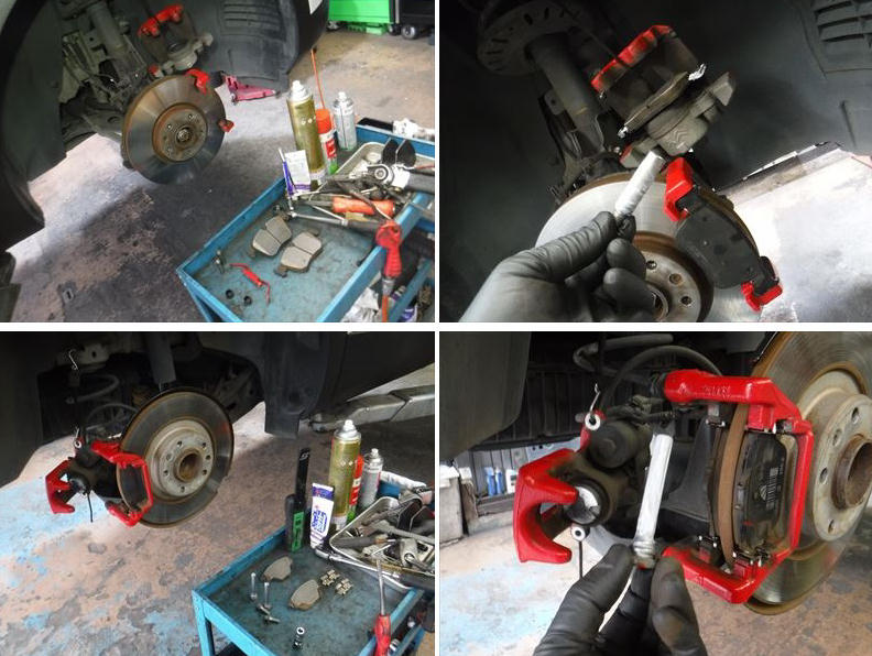 ブレーキパッドの面取りに、スライドピンなど各部グリスアップして組み戻し。