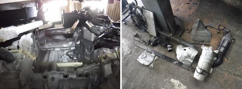 キャタライザーなど補機類取り外し。