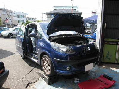 プジョー307SW ルナーミストの車検整備での入庫ですね。