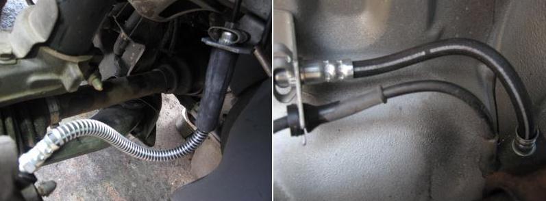 前後左右ともブレーキホースを新品交換後にブレーキフルードを補充・エア抜きをして完了ですね。