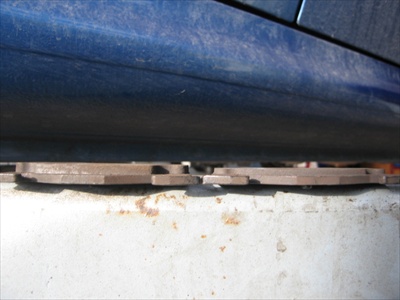 過去に取外した車両のブレーキパッド(約5mm)をサービスで取付。