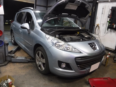 「プジョー207CC 車検整備(フロントブレーキパッド & ドライブベルト交換など)です。」