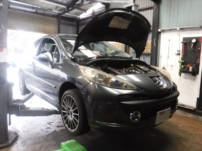 「プジョー207 Premium フロントディスクローター + 低ダストブレーキパッド + バッテリー交換 / プジョー207GTi HighSparkアーシングケーブル取付などです。」