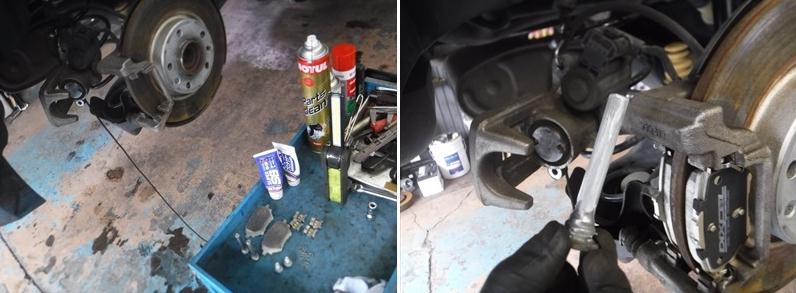 ブレーキパッドの面取りに、スライドピンなど各部グリスアップして、