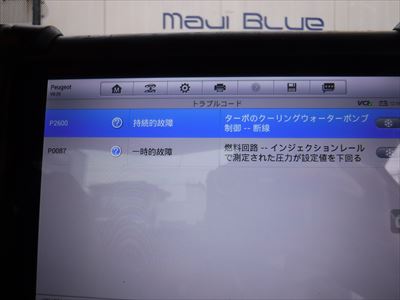 「プジョーRCZ × 2 Engine fault repair needed修理➡ガソリン高圧ポンプ交換&エレクトリックウォーターポンプ+インテークパイプ交換 / デイライト有効化などです。」