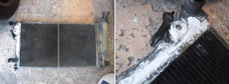 ラジエーターから大量に水漏れした痕跡がありますね。
