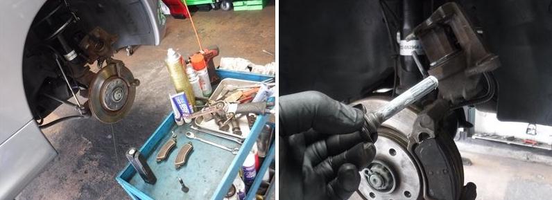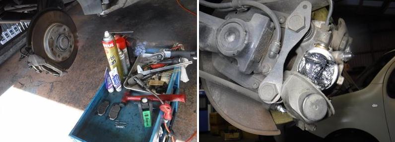 ブレーキパッドの面取りに、スライドピンなど各所グリスアップして組み戻し。