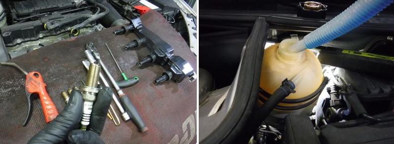 スパークプラグの点検、清掃。