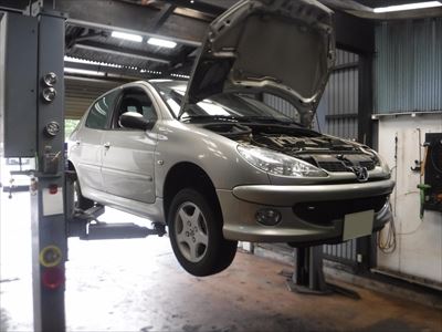 こちらのプジョー206XTプレミアム 5MT アルミナムグレーは車検整備での入庫ですね。