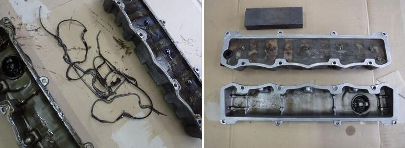 ヘッドカバーも貼り付いているガスケットを除去して清掃・脱脂。