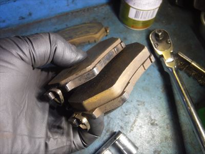 ブレーキパッドの面取りに、スライドピンなど各部グリスアップして組み戻し。