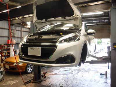こちらのプジョー208スタイル 5MT ビアンカホワイトは車検整備での入庫ですね。