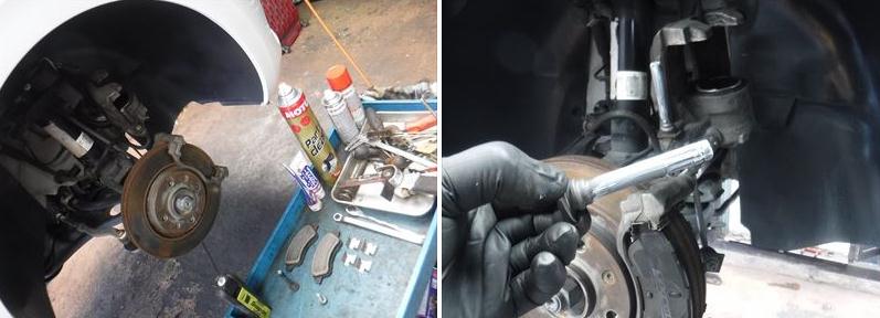 ブレーキパッドの面取りにスライドピンなど各所グリスアップして組み戻し。