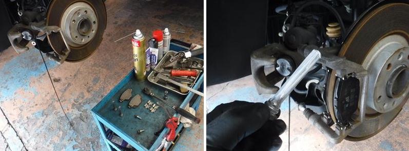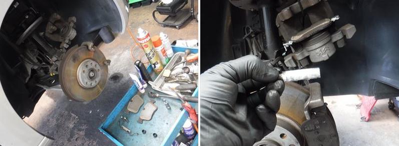 ブレーキPADの面取りに、スライドピンなど各部グリスアップして組み戻し。