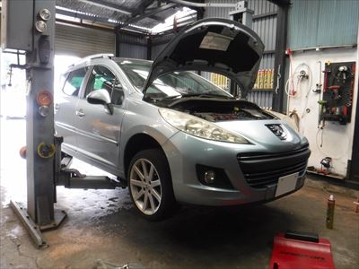 こちらのプジョー207スポーティアム アデンレッドは車検整備での入庫ですね。