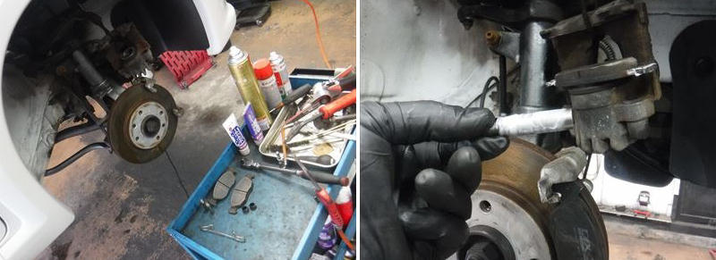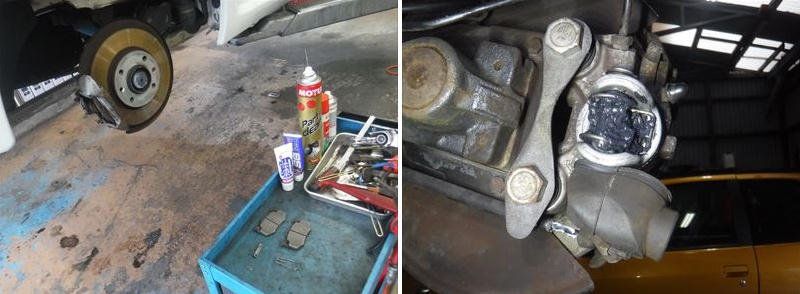 ブレーキパッドの面取りに、スライドピンなど各所グリスアップして組み戻し。