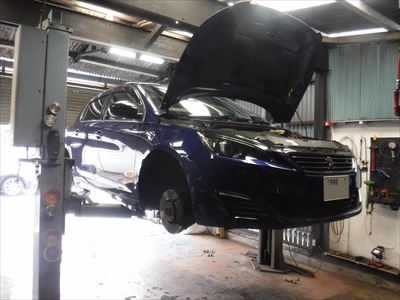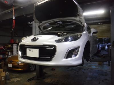 こちらのプジョー308CCグリフ パールホワイトは車検整備での入庫ですね。