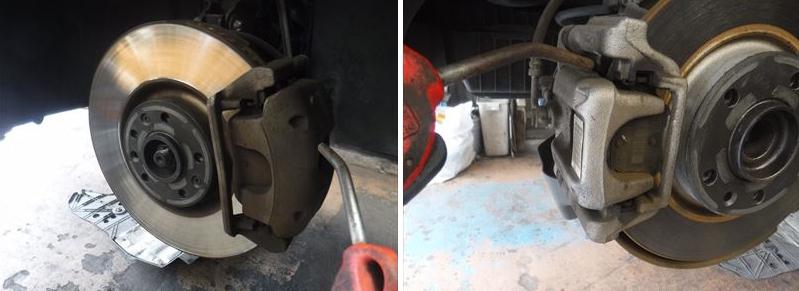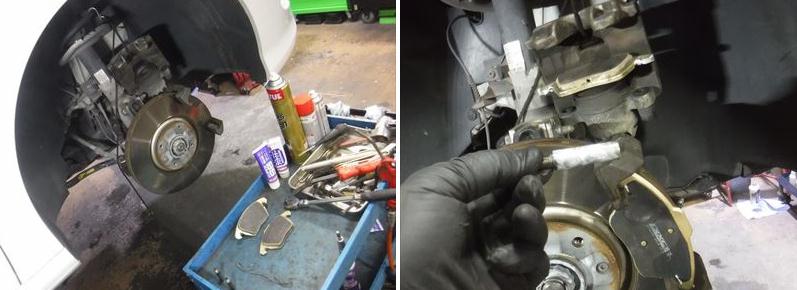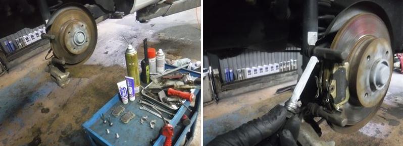 ブレーキPADの面取りに、スライドピンなど各部グリスアップして組み戻し。