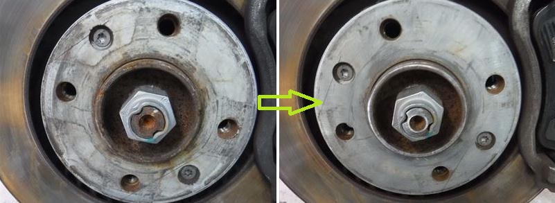 ホイールハブも小型バフで磨いて清掃。