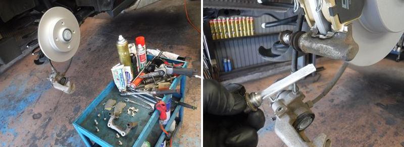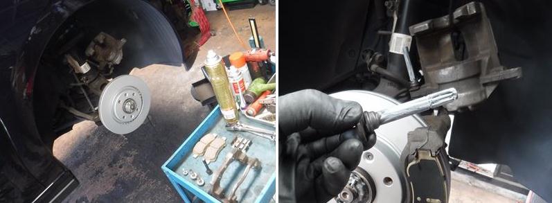 ブレーキパッドの面取りに、スライドピンなど各部グリスアップして
