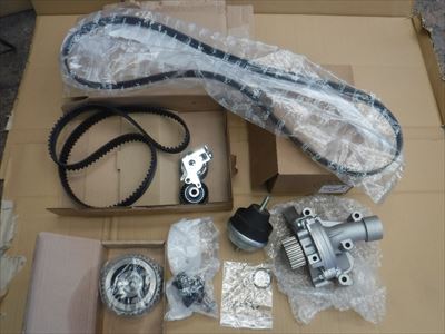 ウォーターポンプ+テンショナー+アイドラー+タイミングベルトも新品交換。