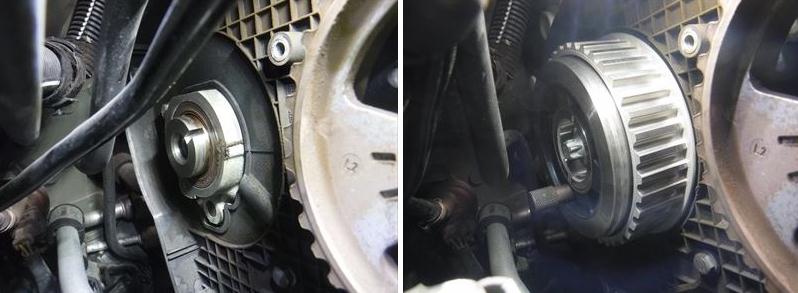 続いて、Tベルト類を取り外してエキゾースト側カムシャフトギアを新品交換。
