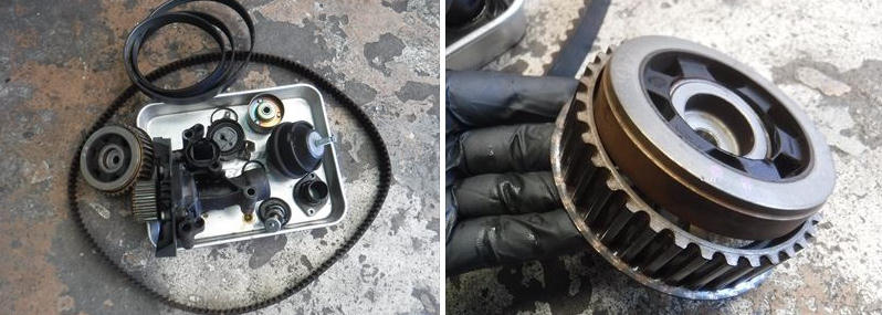 Wポンプは樹脂製、EXカムシャフトギアのダンパーは剥離して外れていました。