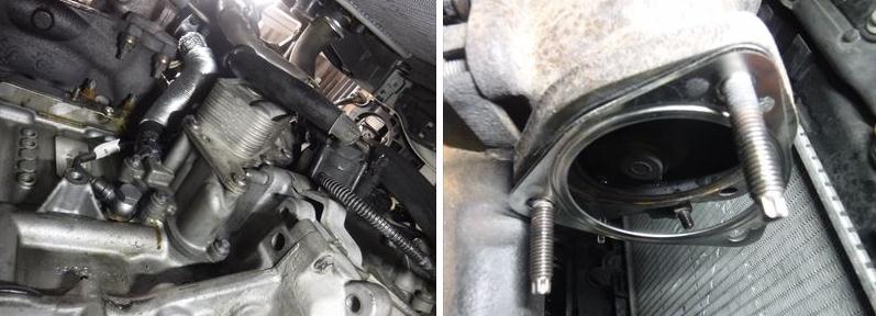 LLCを抜いて、オイルフィルターブラケットを取り外し。