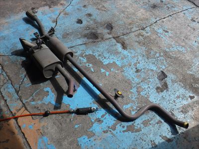 ノーマルマフラーを切断して取り外し、フジツボ製マフラーを取付。