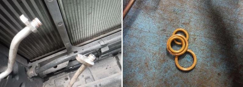 コンデンサー側フロンパイプガスケット新品交換。