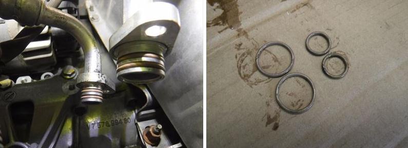 ACコンプレッサー側フロンパイプガスケット新品交換。