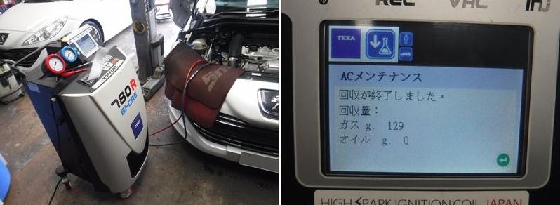 KONFORT780Rで真空引+コンプレッサーオイル+ACガスを充填。