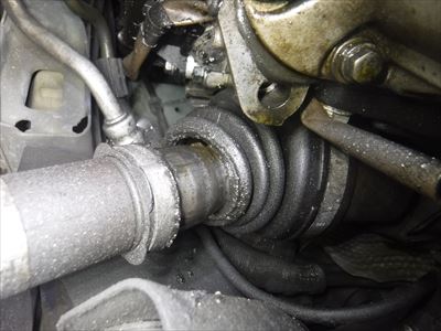 右ドライブシャフトブーツインナー側が切れています。