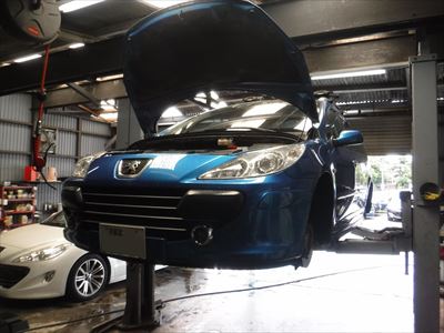 こちらのプジョー307SW エーゲブルーは車検整備での入庫ですね。