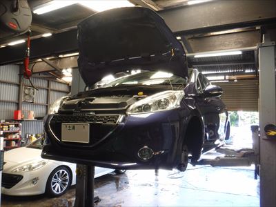 「プジョー208プレミアム ETG5 車検整備(Fディスクローター+低ダストブレーキパッド交換&ミッションオイル交換など)です。」