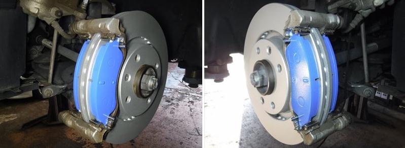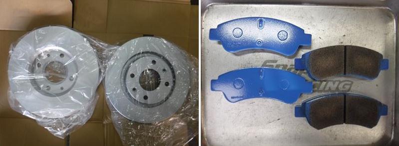 フロントブレーキはディスクローター、ブレーキパッドともに摩耗しているので…。