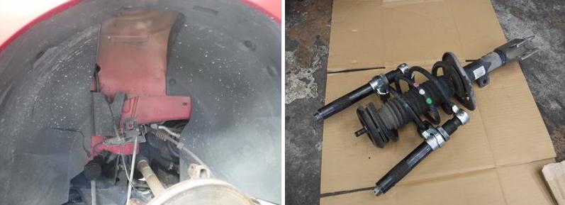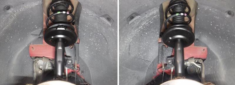 異音の原因はストラットアッパーマウントやショックアブソーバーが疑わしいので、
