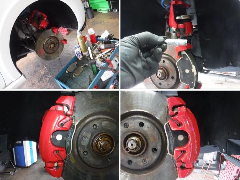 ブレーキパッドの面取りに、スライドピンなど各部グリスアップして組み戻し。