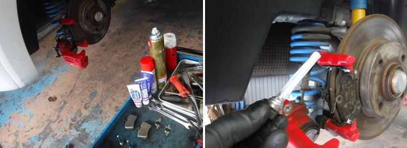 ブレーキパッドの面取りに、スライドピンなど各部グリスアップして