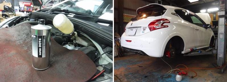 「プジョー208GTi 車検整備(ミッションオイル交換&ブレーキパッド交換など)です。」