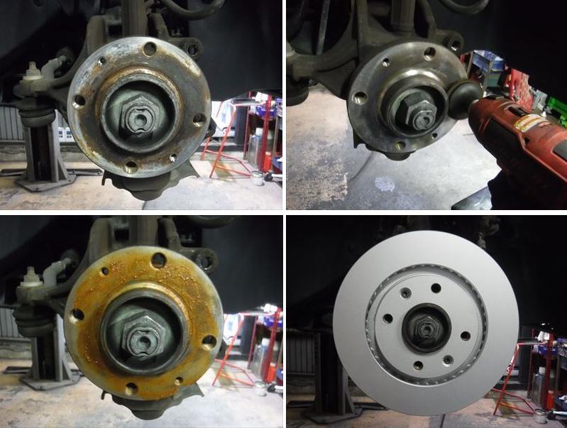 フロントハブは磨いて清掃後に高耐熱防錆グリースを塗布してから新品のローターに交換。