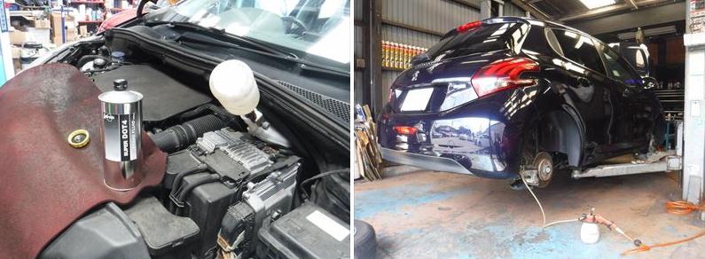 「プジョー208スタイル 車検整備(フロントディスクローター+低ダストブレーキパッド交換など)です。」