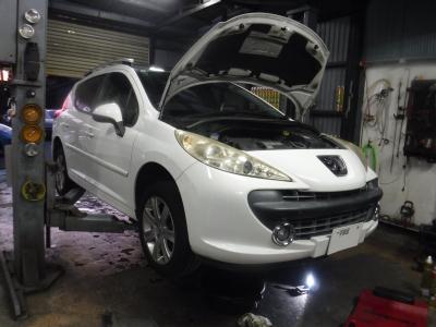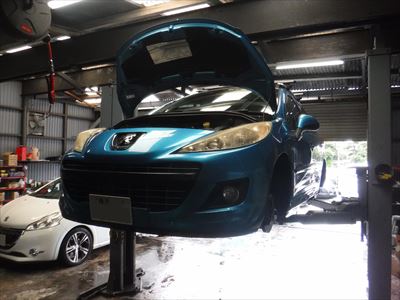 こちらのプジョー207SWプレミアム オアシスブルーは車検整備での入庫ですね。