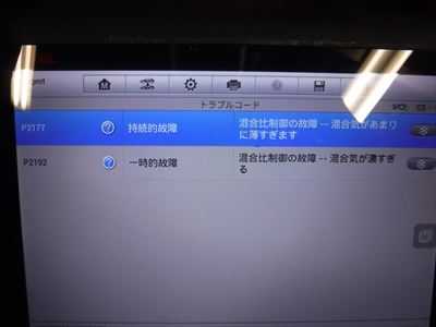 エンジンチェックランプ点灯の原因は混合比制御不良。