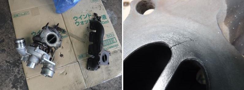 ちなみにタービンを取り外した際、エキマニにクラックが入っていたので