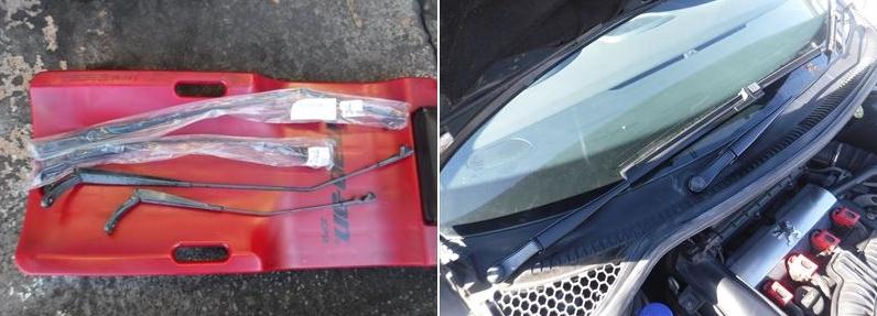 オーナーさん希望により、色が剥げているワイパーアームを新品交換。