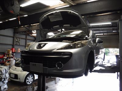 こちらのプジョー207GTi アルミナムグレーは車検整備での入庫ですね。