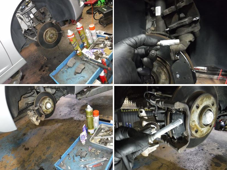ブレーキパッドの面取りに、スライドピンなど各部グリスアップして組み戻し。